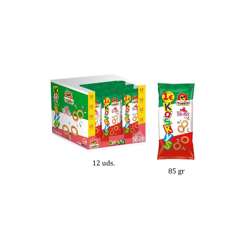 Surtido de Snack ( anillos, apetinas, panojitos, tosfritas), producto SIN GLUTEN, en aceite de girasol.