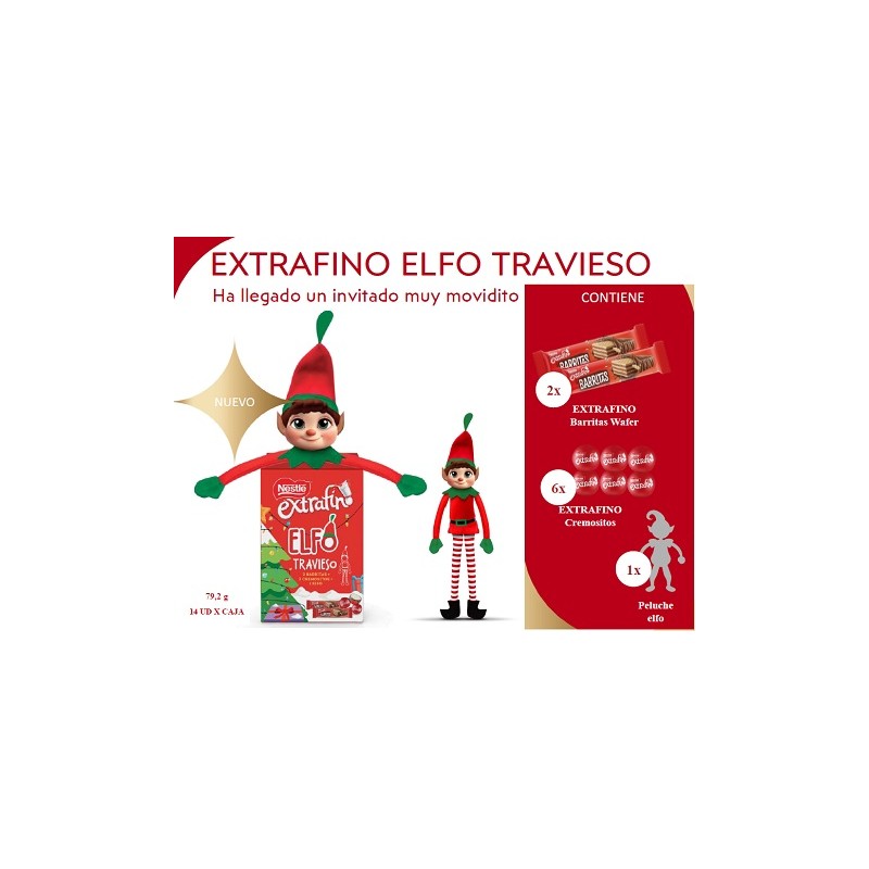 Bonita presentacion de CHOCOLATES NESTLE, contiene 2 barritas de wafer extrafino y 6 cremositos de NESTLE acompañados de un muñeco DELFO TRAVIESO.