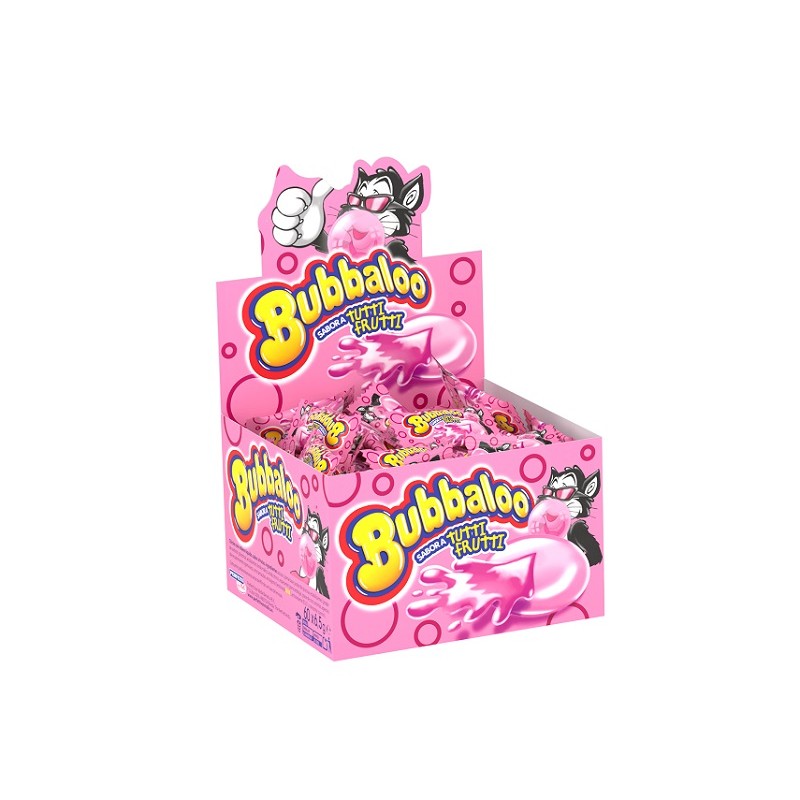 Chicles Bubbaloo envueltos individualmente sabor a Tutti Frutti. Caja con 60 uds