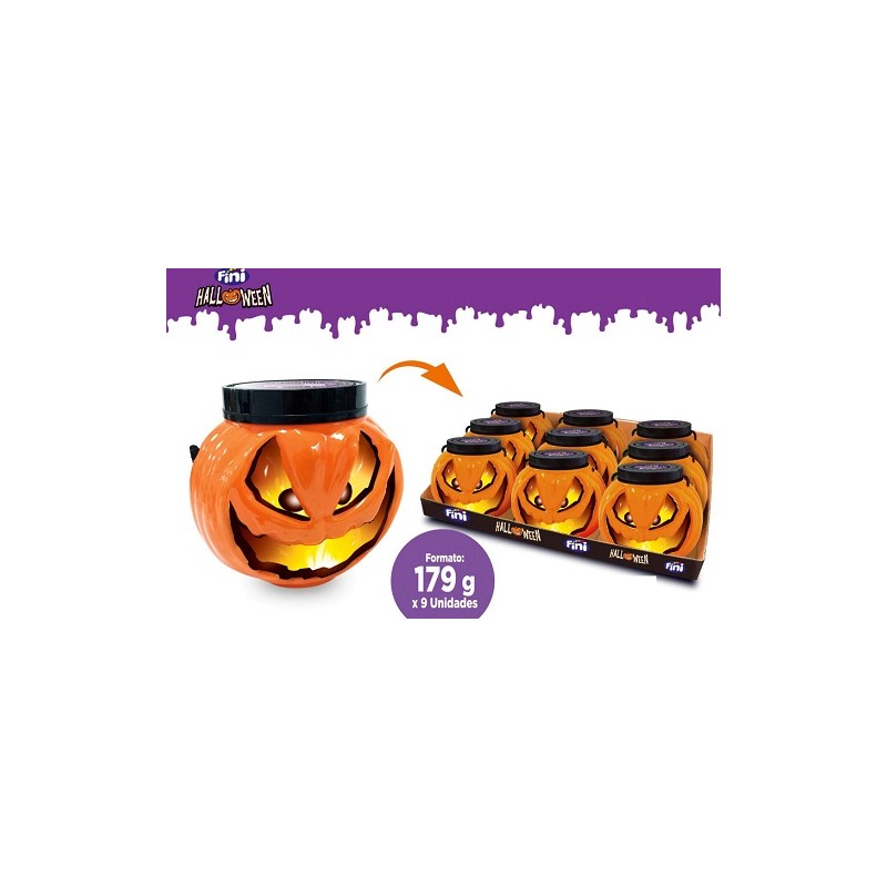 FINI CALABAZA HALLOWEEN, calabaza de halloween con 179 gramos de golosinas variadas de fini en su interior