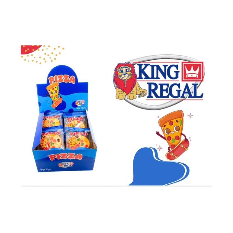 Gominola con forma de PIZZAS envueltas individualmente ideales para preparacion de detalles con motivo de celebraciones. Presentacion en cajas de 36 uds. de 18grs. cada una.