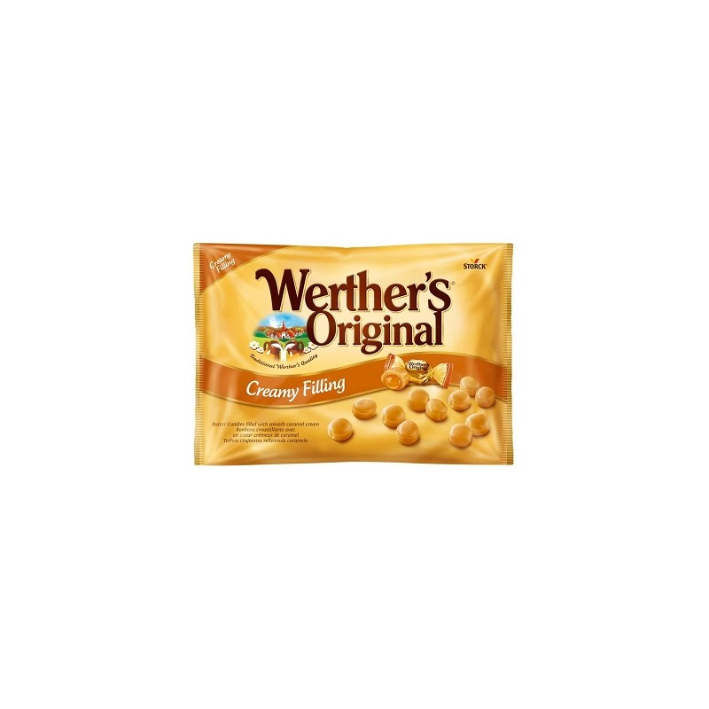 WHERTHR'S CARAMELO CREME, bolsa de 1Kg de caramelos blandos rellenos de crema de leche y mantequilla, envueltos individualmente, muy dulces, ideales para tener un detalle en tu oficina por ejemplo.