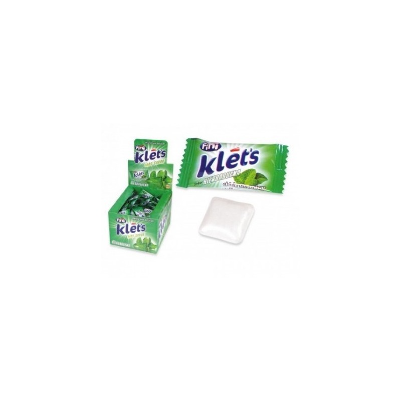 CHICLES KLETS HIERBABUENA, caja de 200 chicles, con un sabor duradero de hierbabuena, envueltas individualmente, sin azucar
