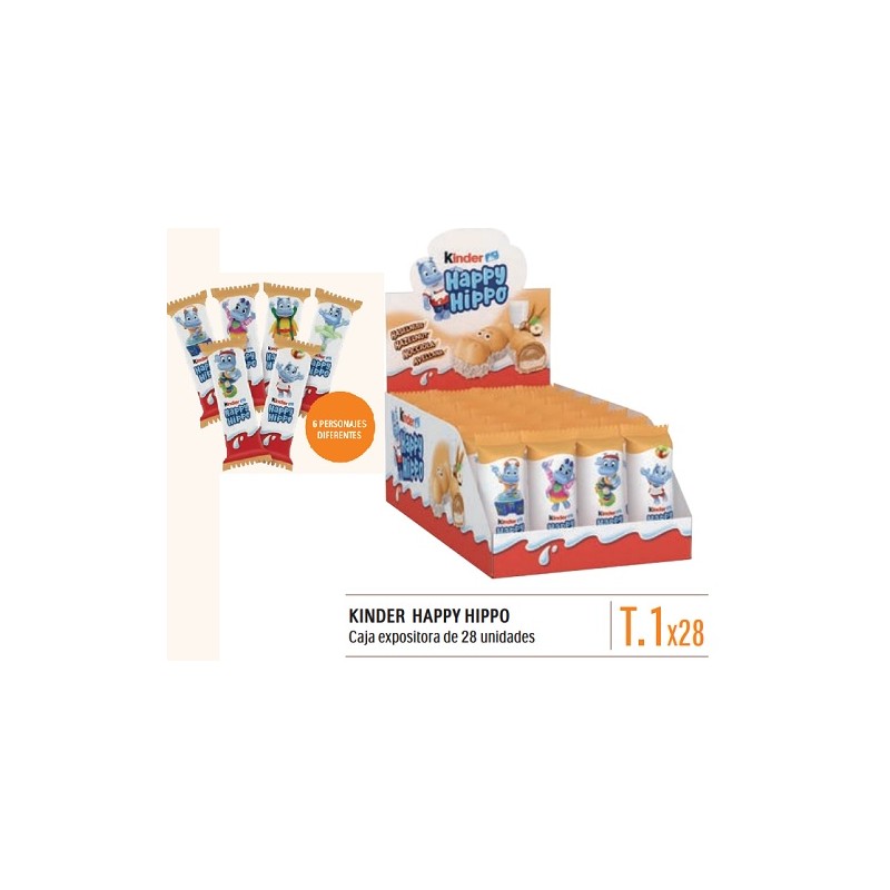 KINDER HAPPY HIPPO AVELLANA es la galleta de barquillo con granulado a base de Avellana y un delicioso relleno cremoso de leche y cacao.