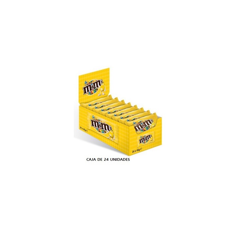 M&M de cacahuete. Caja con 24 bolsitas de 45 grs cada una.