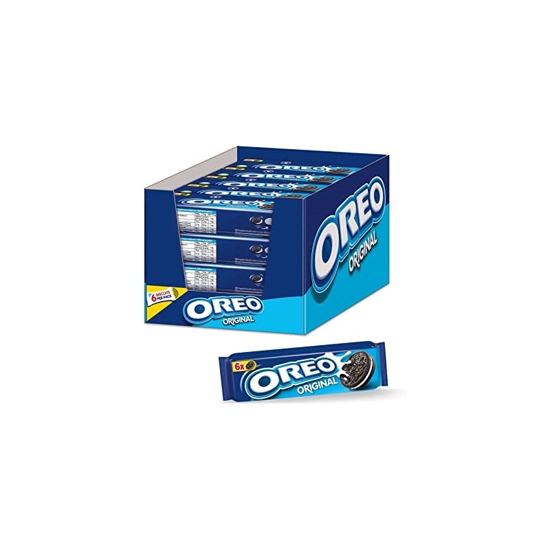Galletas Oreo Original con 6 galletitas cada paquete. El precio es de 1 paquete y se vende en cajas de 20 unidades