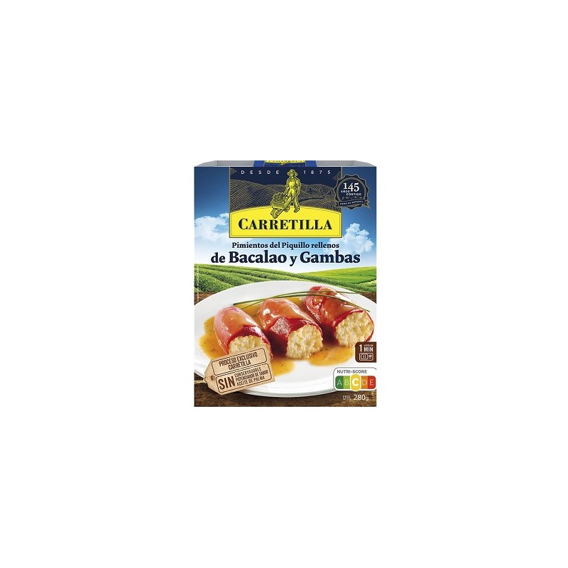 PIMIENTOS DE PIQUILLO RELLENOS DE BACALAO Y GAMBAS, CARRETILLA, pimientos rellenos con bacalao y las delicias de gambas