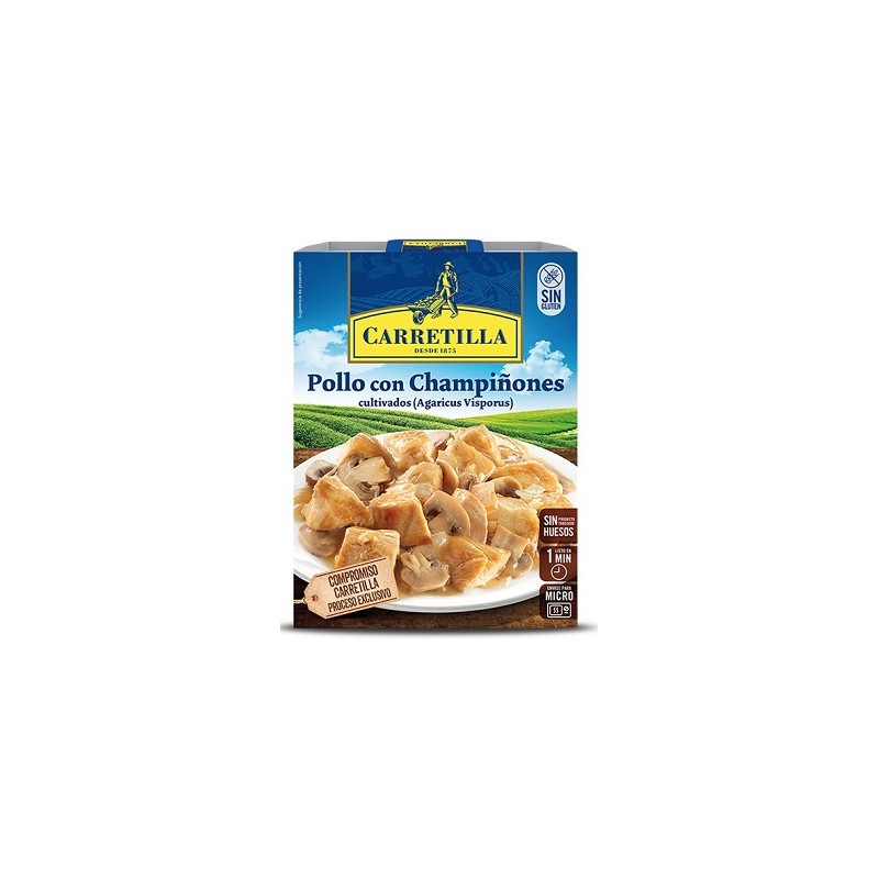 POLLO CON CHAMPIÑONES, CARRETILLA, trozos de pechuga de pollo acompañadas de champiñones, muy delicioso,