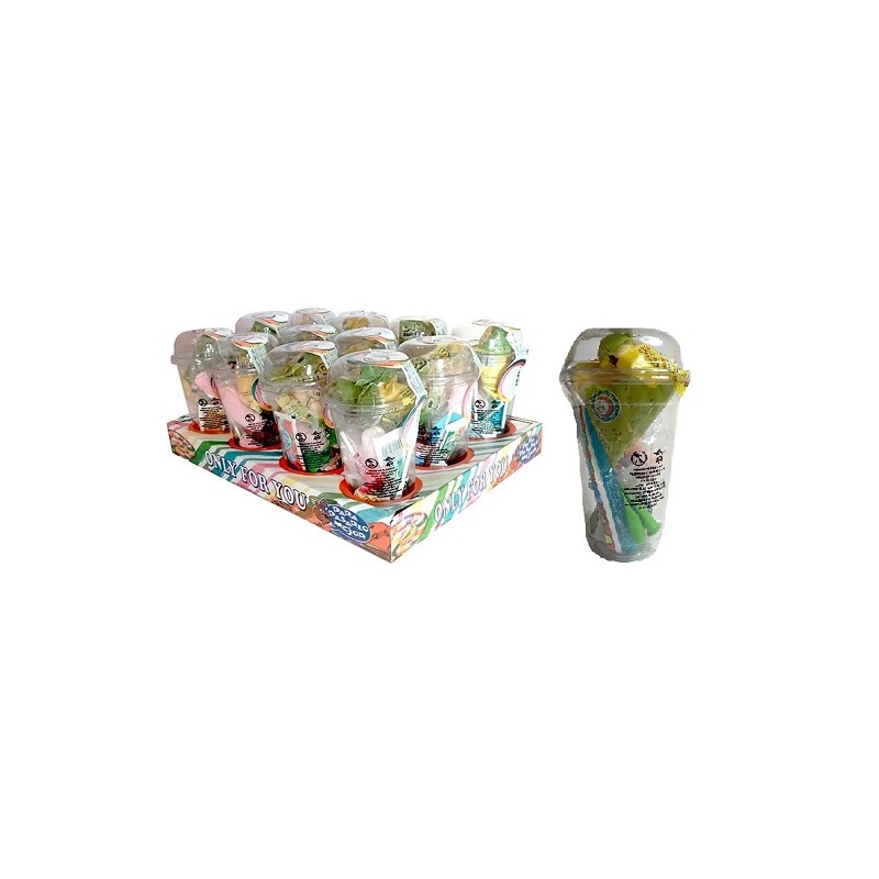 Bandeja de 12 VASOS Rellenos de Golosinas, Sncaks, piruletas etc, IDEALES PARA CELEBRACIONES, tales como CUMPLEAÑOS, COMUNIONES Y FIESTAS.