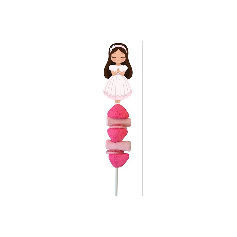 PINCHO NIÑA COMUNION, caja de 30 pinchos de nubes de 45 gramos cada uno, en forma de niña comunion