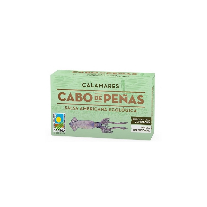 Calamares en salsa americana, acompañados de salsa elaborada con ingredientes de producción ecológica certificada, así como el aceite de oliva virgen extra