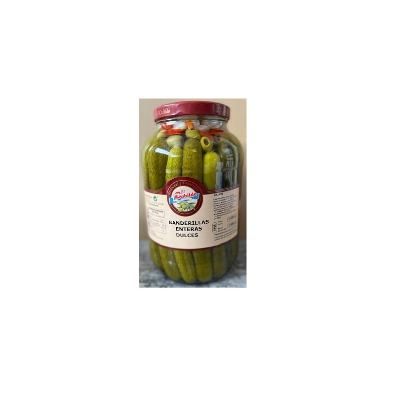 Frasco de Cristal con autenticas Navarras. Pepinillos y cebolletas en vinagre