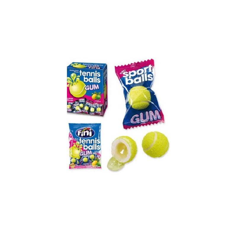 CHICLES TENNIS GUM, 200 chicles rellenos de forma bola de tenis, rellenos de liquido a sabor miel envueltos individualmente, muy deliciosos