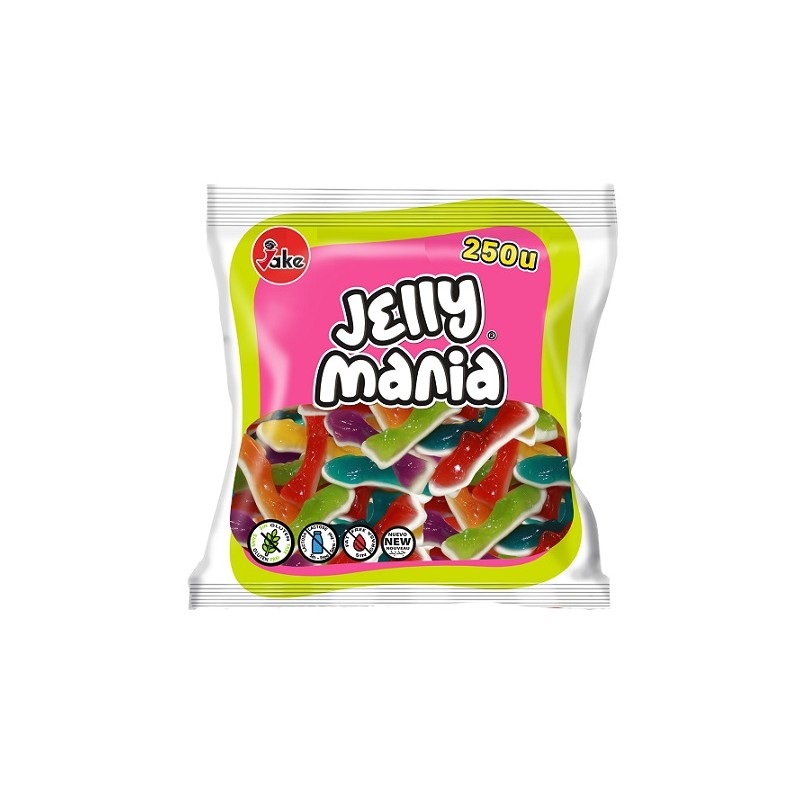 Bolsas de gominolas con 250 uds de Jelly mania en forma de tiburones. Son de Jake