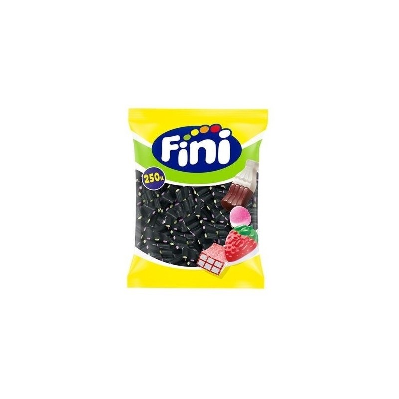 Azúcar, jarabe de glucosa y fructosa, harina de trigo (gluten), almidón, grasa vegetal (palma), aceite vegetal (palma, coco), extracto de regaliz, gelatina, sal, humectante (E422), emulgente (E471), aromas, colorantes: E100, E120, E133, E153.
