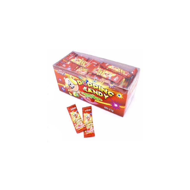 POPPING CANDY, estuche de 200 sobres caramelos con chasquidos popping candy a sabor fresa ácida