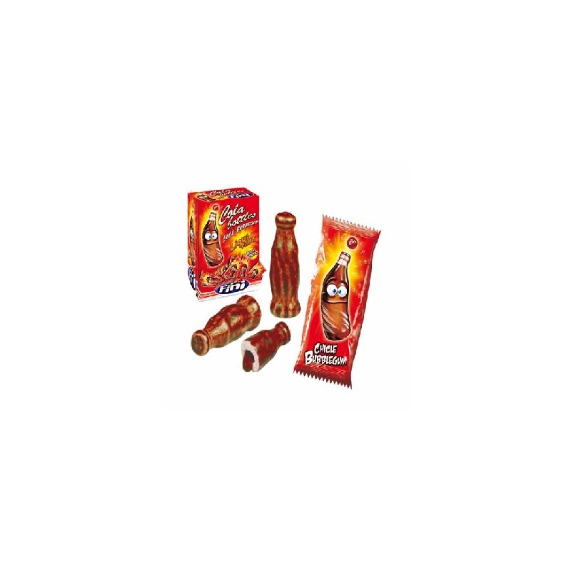 CHICLES BOTELLA COLA FINI, caja de 200 chicles en forma de botella cola rellenos de liquido a sabor de cola, envueltos individualmente, muy deliciosos,