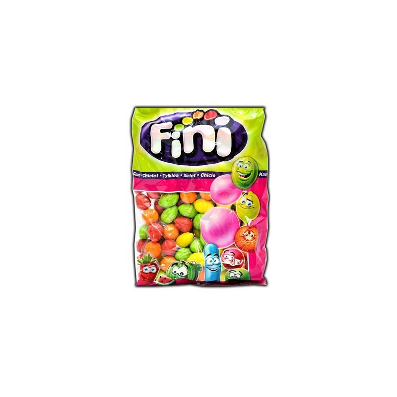 CHICLES MACEDONIA FINI, bolsa de 200 chicles grageados multicolor en distintos sabores y formas de frutas