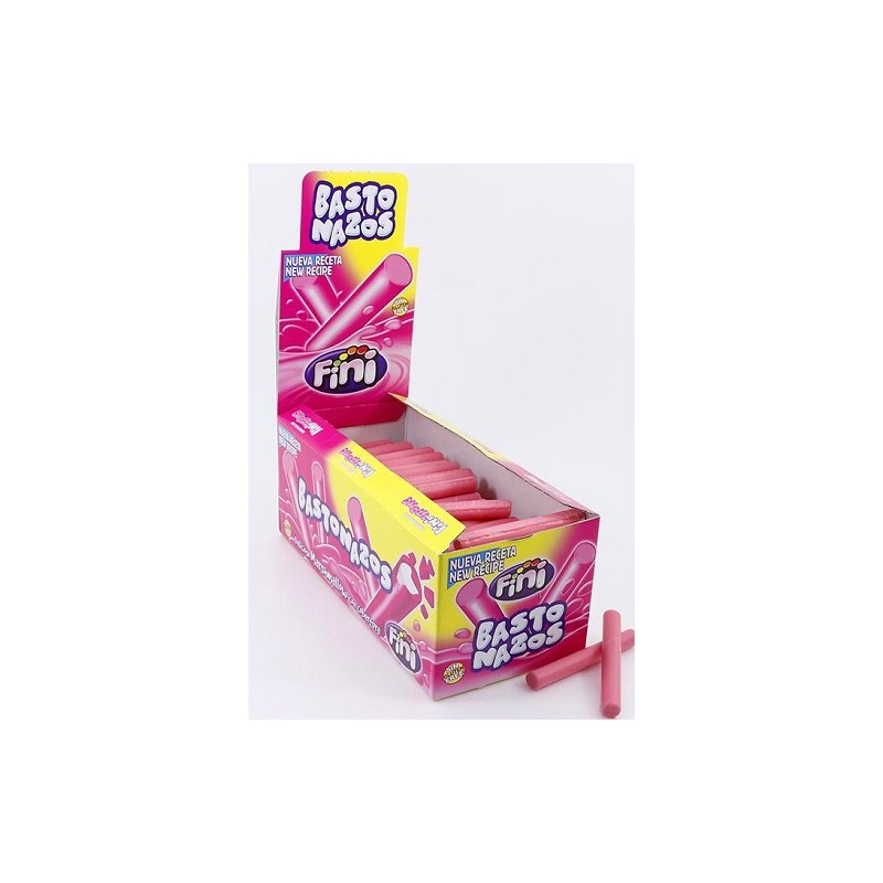 BASTONAZOS FINI, caja de 150 unidades de tronquitos de nube de fresa cubiertos de una capa crujiente de dulce
