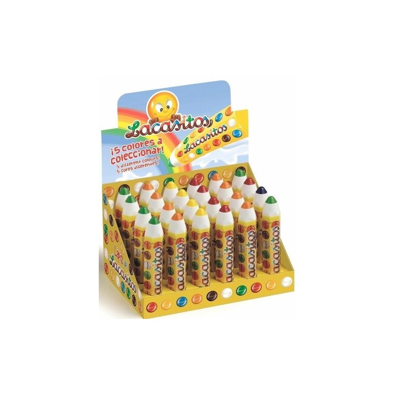 Tarro con 34 cajitas de lapiceros de chocolate con divertidos personajes de animales.