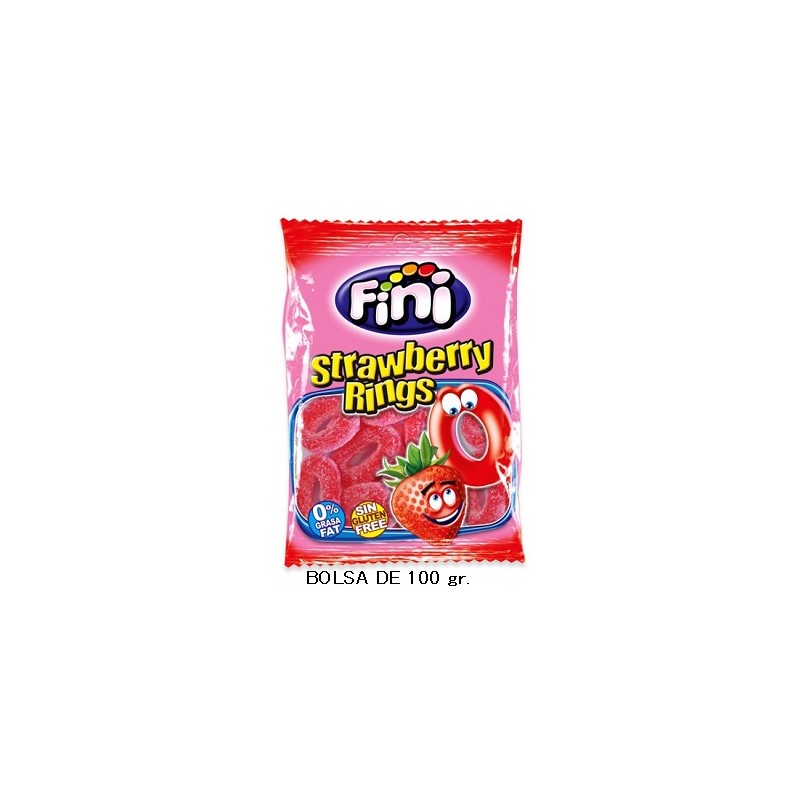 STRAWBERRY RINGS - AROS FRESA FINI, 12 bolsitas de 90 gramos de aros de fresa de gominola azucaradas fini