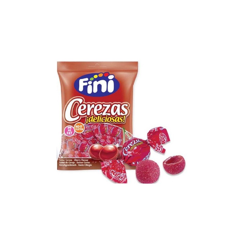 BOLSITAS DE 80 grs. de CEREZAS GRAGEADAS FINI CON INTENSO SABOR, cajas de 12 bolsitas cada bolsa de 80 grs.