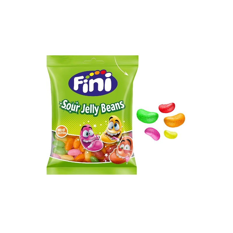 Bolsitas de alubias de caramelo acido en bolsas de 90 grs. con sabores surtidos. Cajas de 12 bolsitas