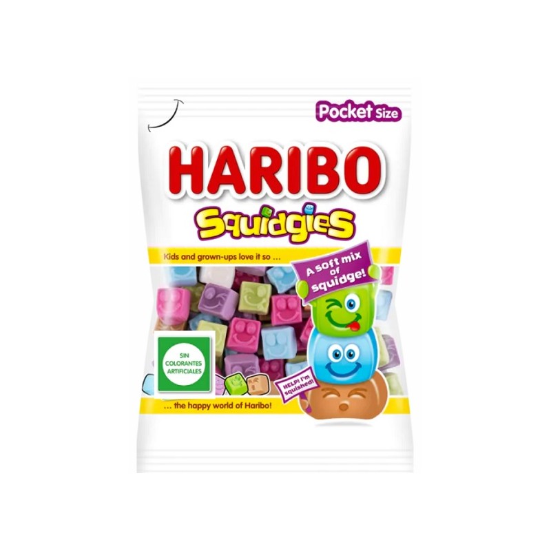 18 bolsitas con 100 grs cada una de Ladrillos de fresa con pica de Haribo