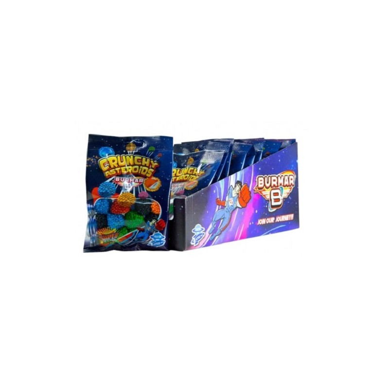Bolsitas de gominolas en forma de asteroides con colores surtidos