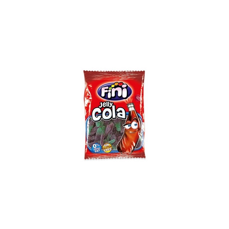 Gominola en forma de botellas de cola, sabor cola con una capa de azucar, sin gluten , % GRASA