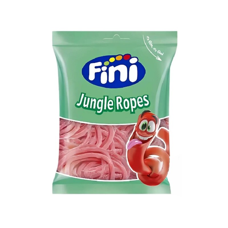 Fini Jungle Ropes, Tiras de espaguetis de regaliz fresa un paquete de 90 g Perfectos para compartir o disfrutar sobre la marcha, . Disfruta de una deliciosa experiencia agridulce que te alegrará el día