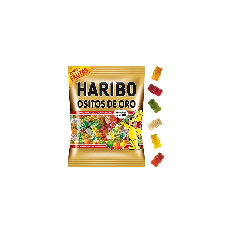 18 bolsitas con 100 grs de Ositos Oro de Haribo con zumo de frutas
