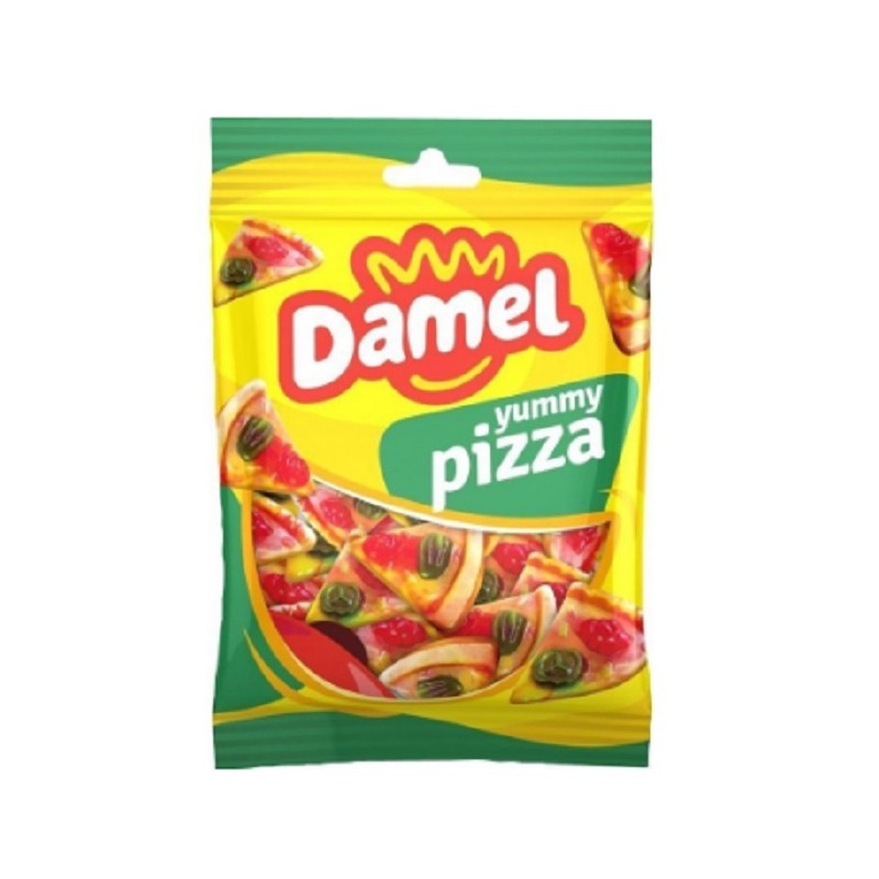 Chuches en forma de PIZZAS DAMEL, en bolsitas de 80 grs. cajas de 12 uds. El precio es de 1 ud y se vende en cajas con 12 bolsitas