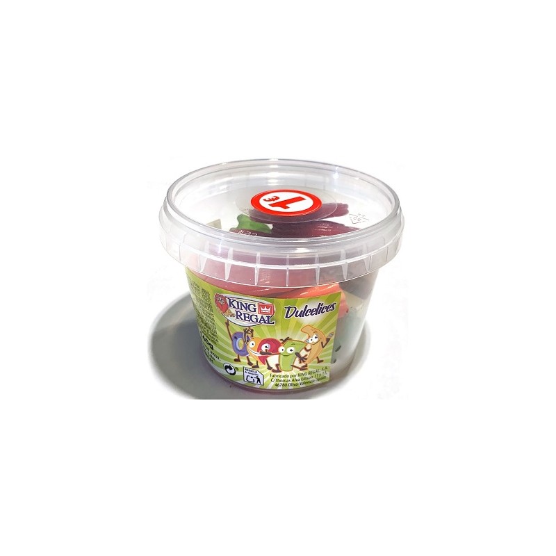 TARRINA DULCELICES KING REGAL, tarrina de 140 gr de un surtido de gominolas muy deliciosas en diferentes colores y en varios sabores, ideal para mesas dulces @MT TARRINA DULCELICES KING REGAL comprar online @MTF @MD TARRINA DULCELICES KING REGAL, tarrina de 140 gr de un surtido de gominolas muy deliciosas en diferentes colores y en varios sabores, ideal para mesas dulces. @MDF @MK golosinas chuches gominolas @MKF