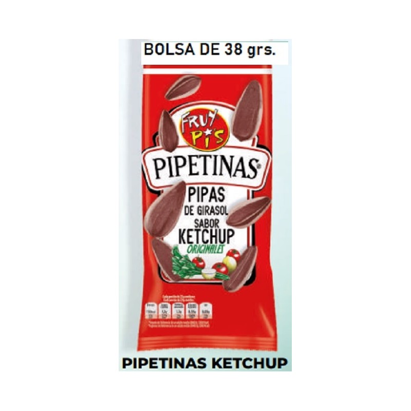 Pipas de girasol sabor Ketchup Originales de Fruypis. El precio corresponde a 1 bolsita de 38 grs y se vende en cajas de 24 uds