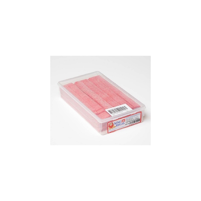CINTAS COLA KING REGAL, estuche de 200 cintas a sabor cola pica pica, cubiertas de una capa de azucar, con un punto acido y un sabor suave de cola
